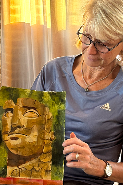 Kato’s passion for art and teaching, and her supportive, non-judgemental style really helped me to explore outside my comfort zone. This class has been part of my journey to live my retirement in technicolour…